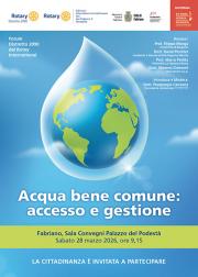Per celebrare questo evento, il nostro Club ha organizzato un Forum Distrettuale con il patrocinio del Distretto 2090, del Comune di Fabriano e con la partecipazione dei Rotary Club Altavallesina Grottefrasassi, Jesi, Jesi Federico II e Senigallia. Il Forum intende focalizzare l’attenzione sulla più importante risorsa vitale del nostro pianeta, trattando aspetti quali il diritto all’acqua per tutti, la sua salvaguardia e la gestione delle riserve idriche. La trattazione sarà svolta da illustri studiosi e dal Direttore Generale di Viva Servizi.
